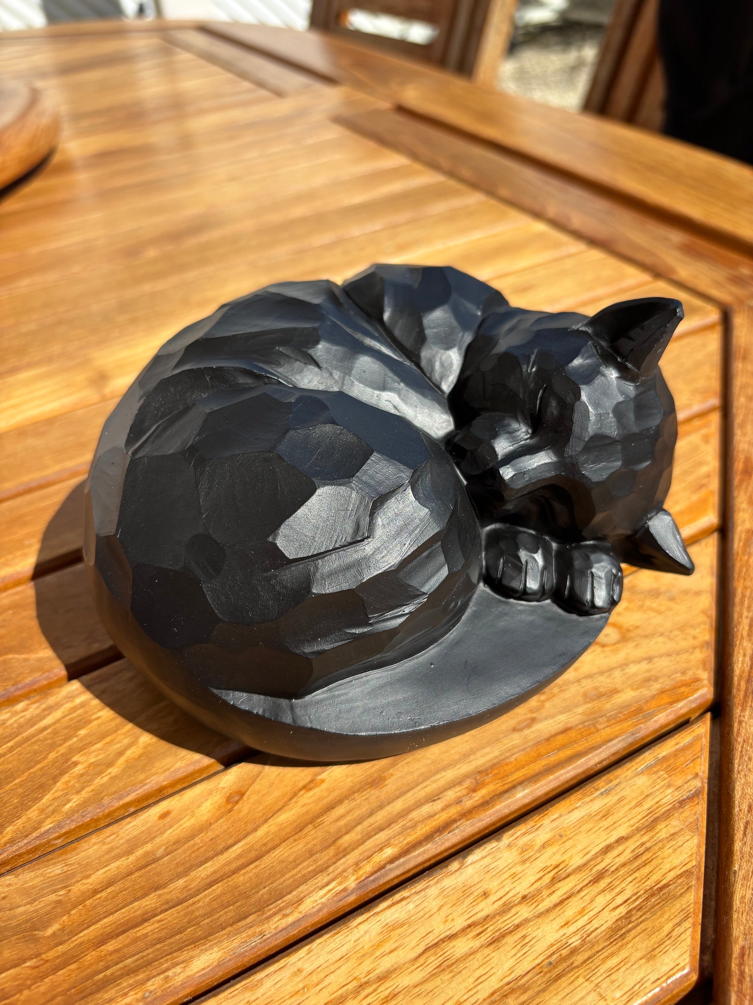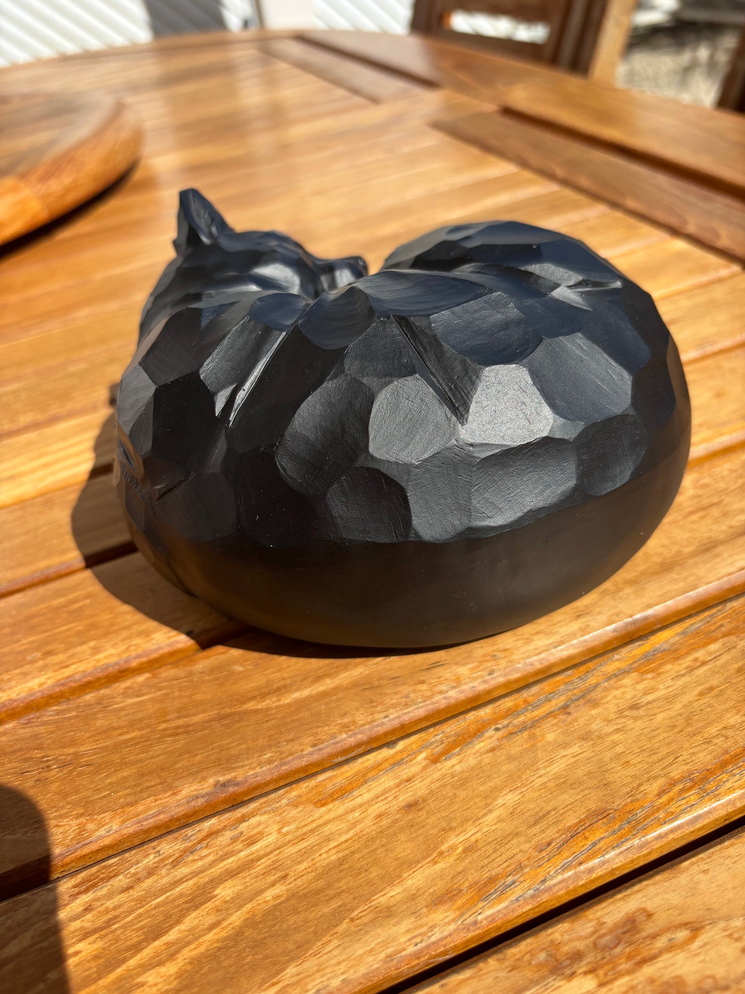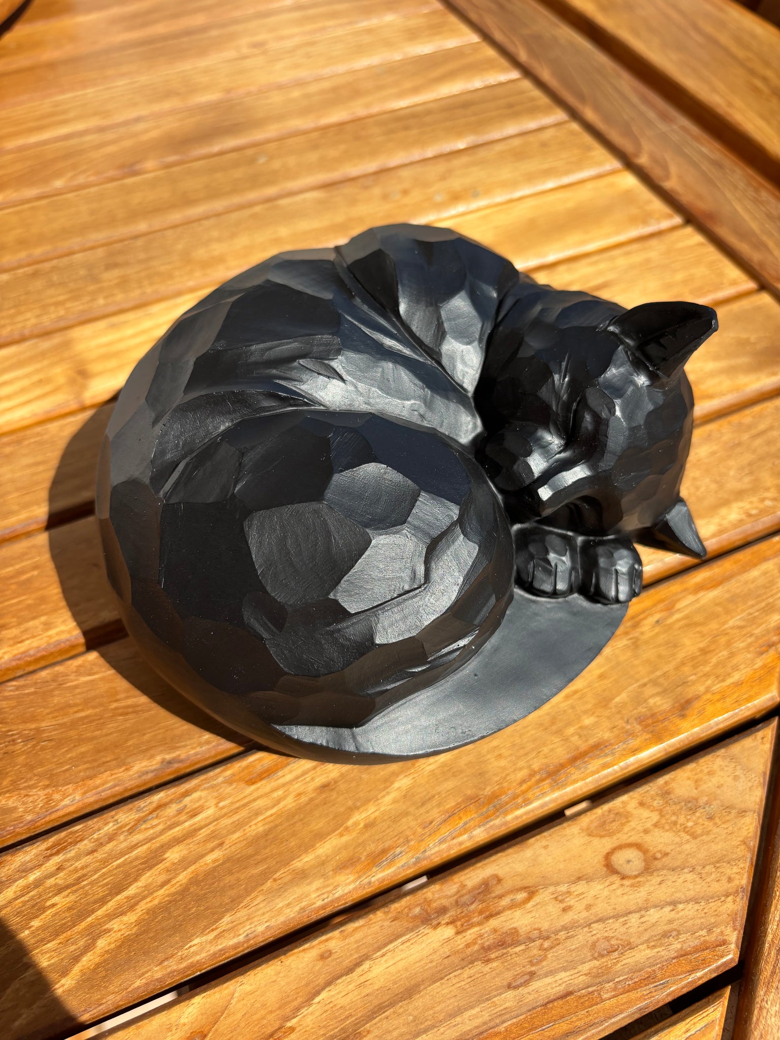 Questa urna nera è realizzata in resina e ha la forma di un gatto . È il modo perfetto per onorare il tuo amato gatto. Ha un'apertura inferiore sicura con coperchio filettato. Un cuscinetto in feltro la rifinisce per renderla antiscivolo. È possibile riporre le ceneri al suo interno dopo la cremazione. È possibile anche inserire una ciocca di capelli o una collana.