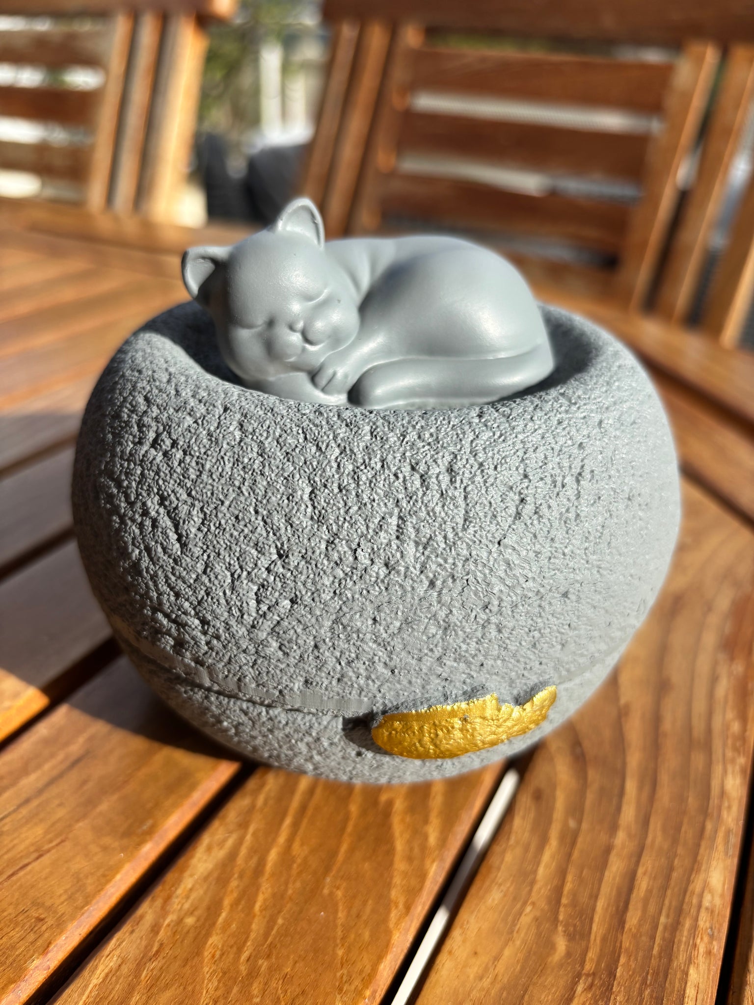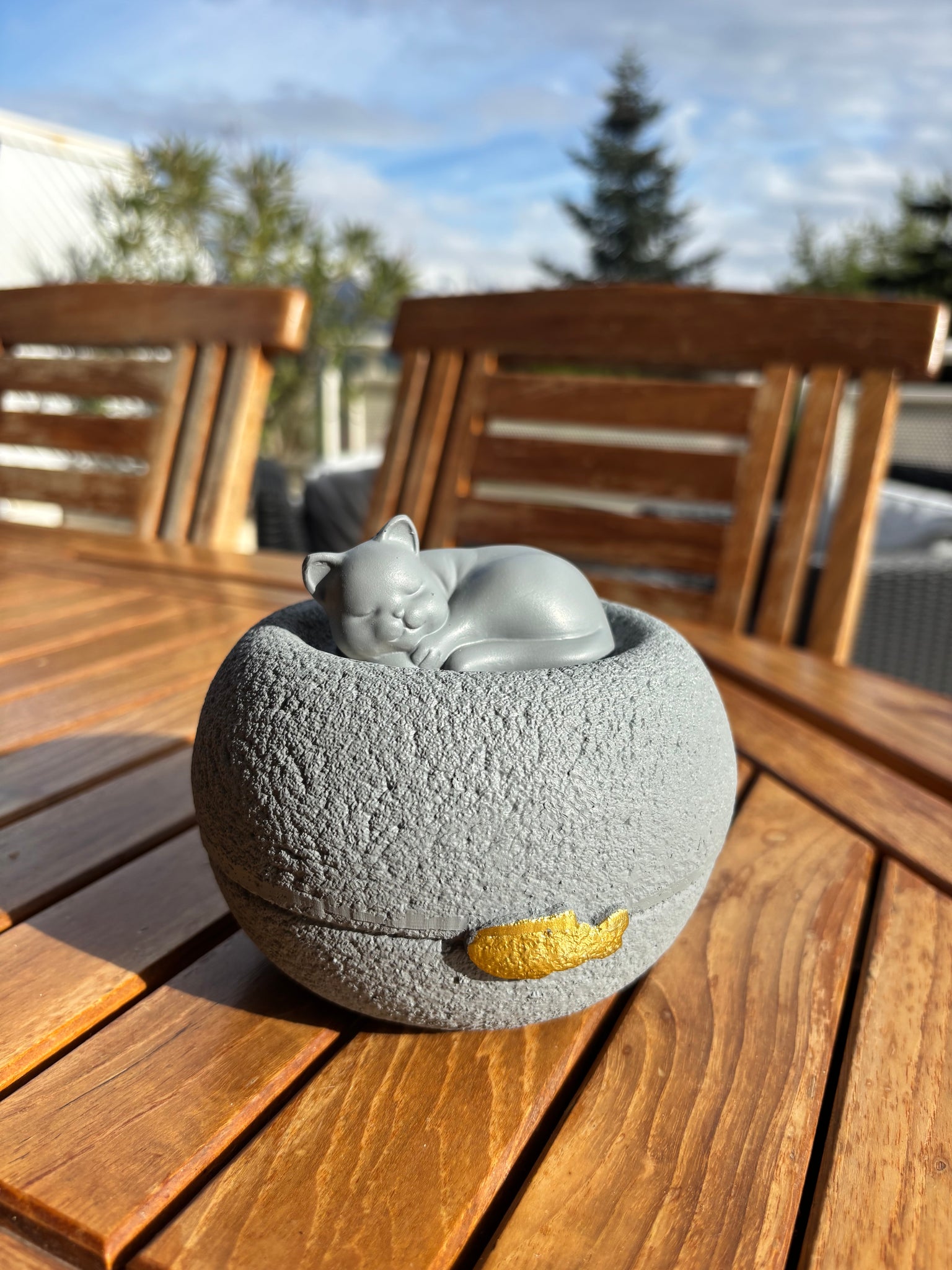 Si tratta di un prodotto commemorativo di alta qualità che garantisce la massima sicurezza per le vostre ceneri. L'apertura situata sotto la statua si chiude con un coperchio di sicurezza. Inoltre, grazie al suo design e alla sua raffinata fattura, l' urna a forma di gatto è una splendida decorazione per la vostra casa.