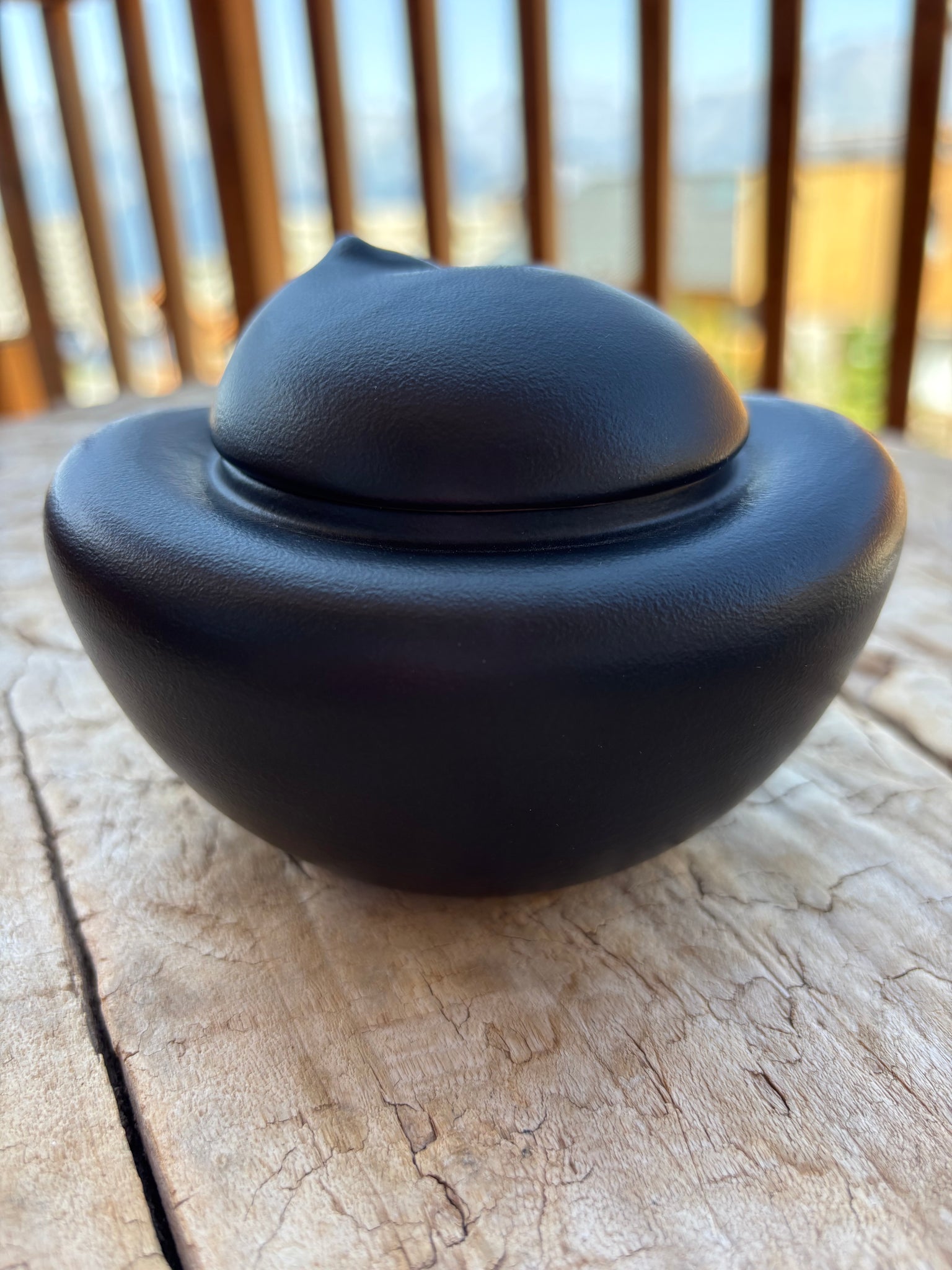 Questa urna cineraria è realizzata in ceramica. Ha un'apertura superiore con coperchio di sicurezza.