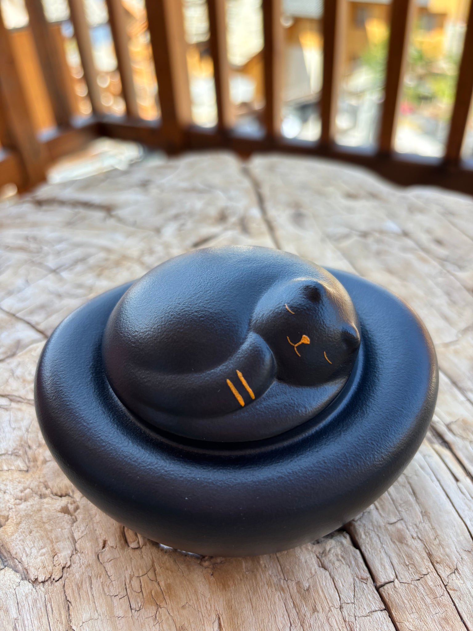 • Carica l'immagine nel visualizzatore di Gallery, jolie urne chat ceramique noire ouverte