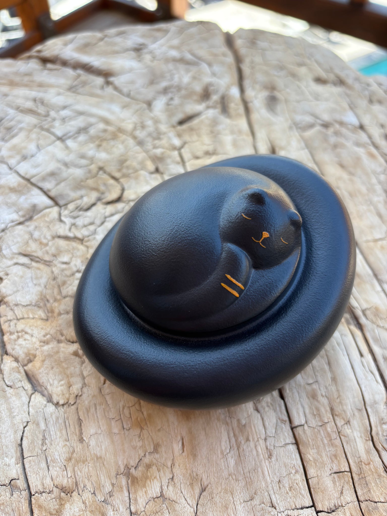 • Carica l'immagine nel visualizzatore di Gallery, urne chat ceramique noire patte hat du dessous