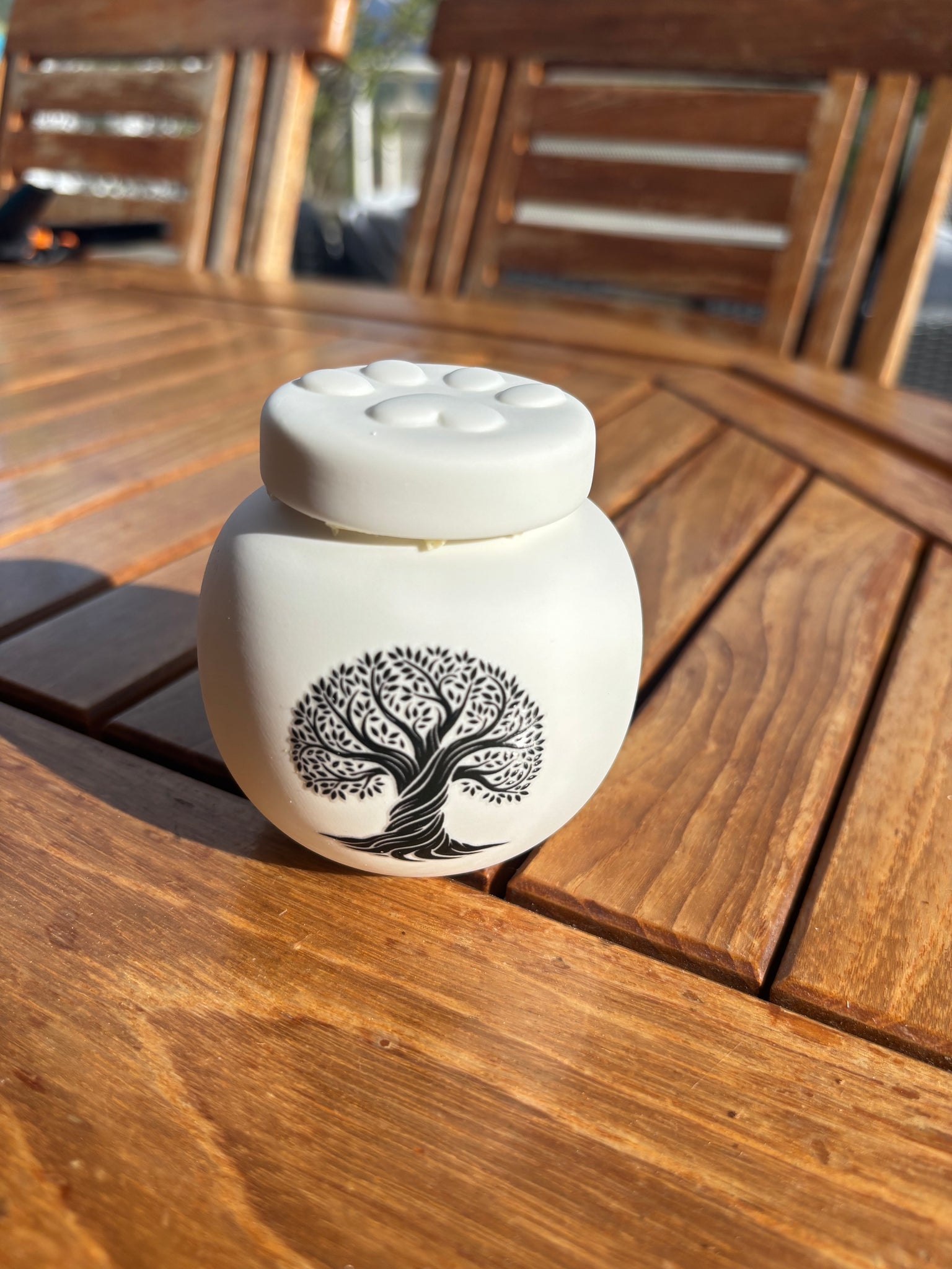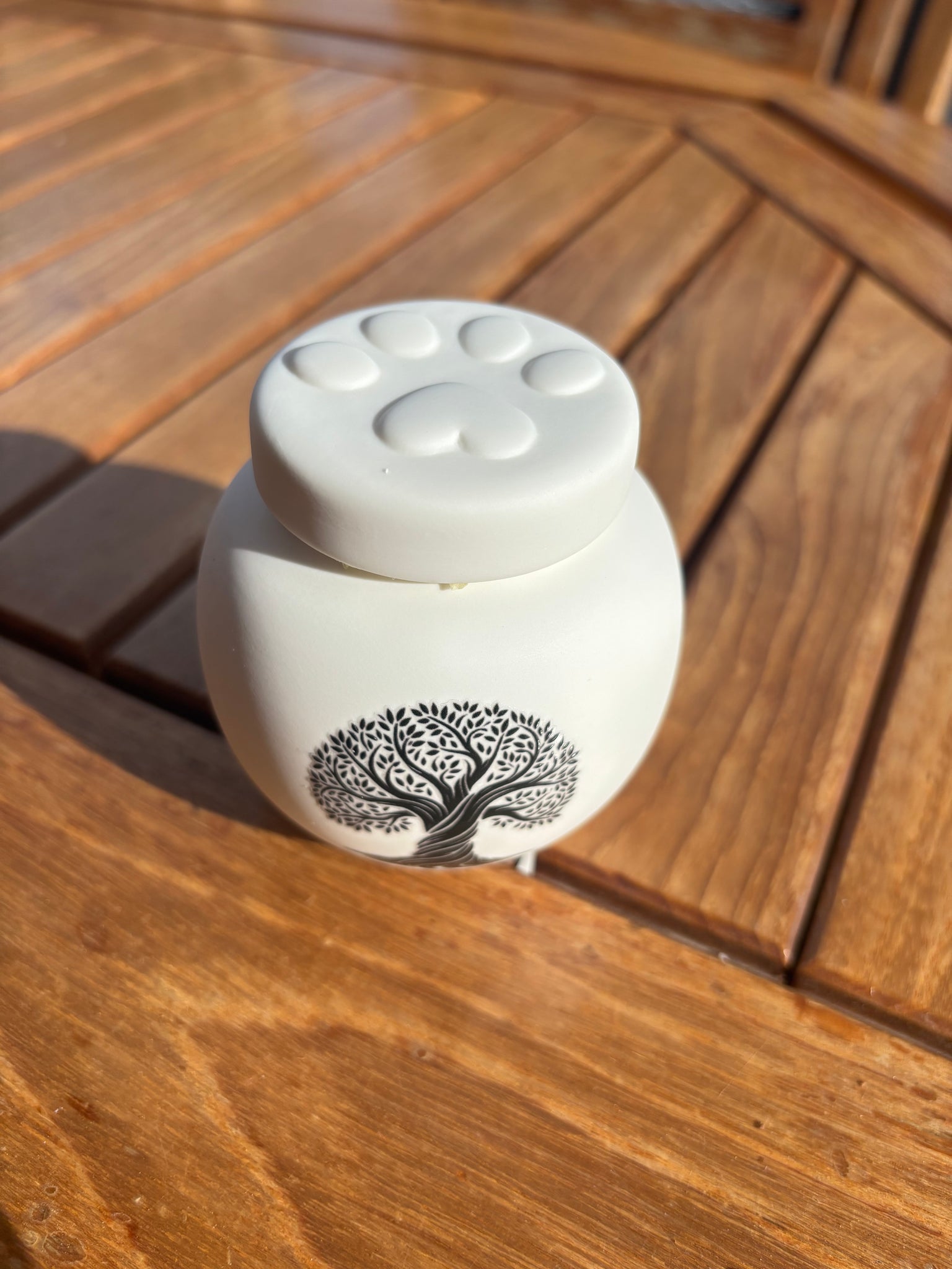 Questa urna funeraria in ceramica è stata progettata per contenere le ceneri di un animale che pesasse in vita meno di 7 kg.