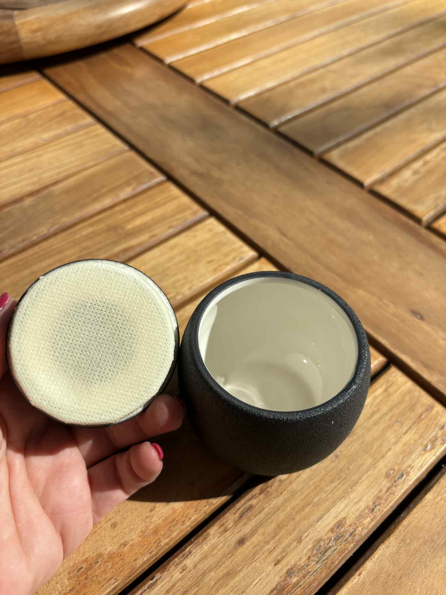Questa urna cineraria è realizzata in ceramica. Ha un'apertura superiore con coperchio di sicurezza.