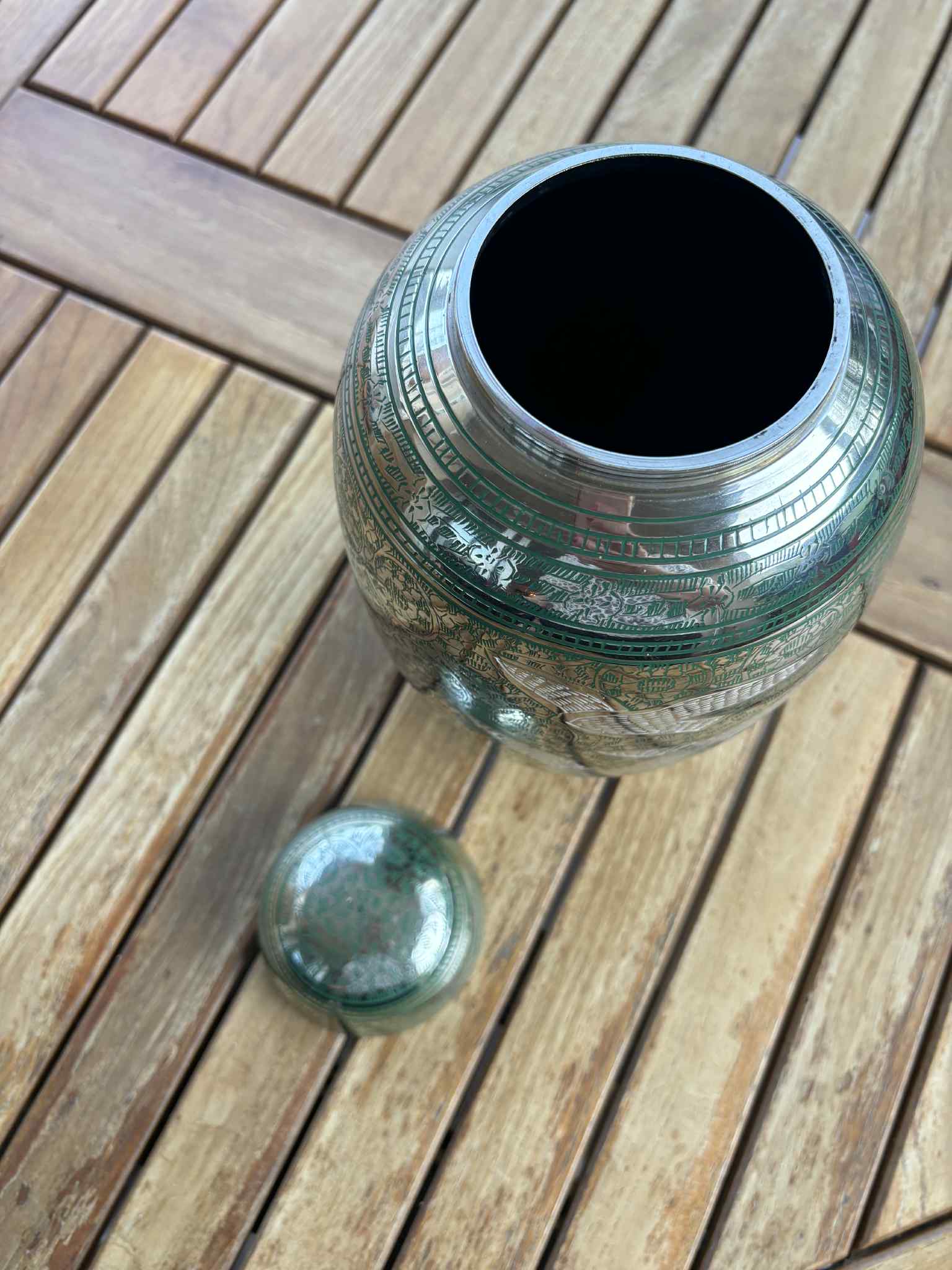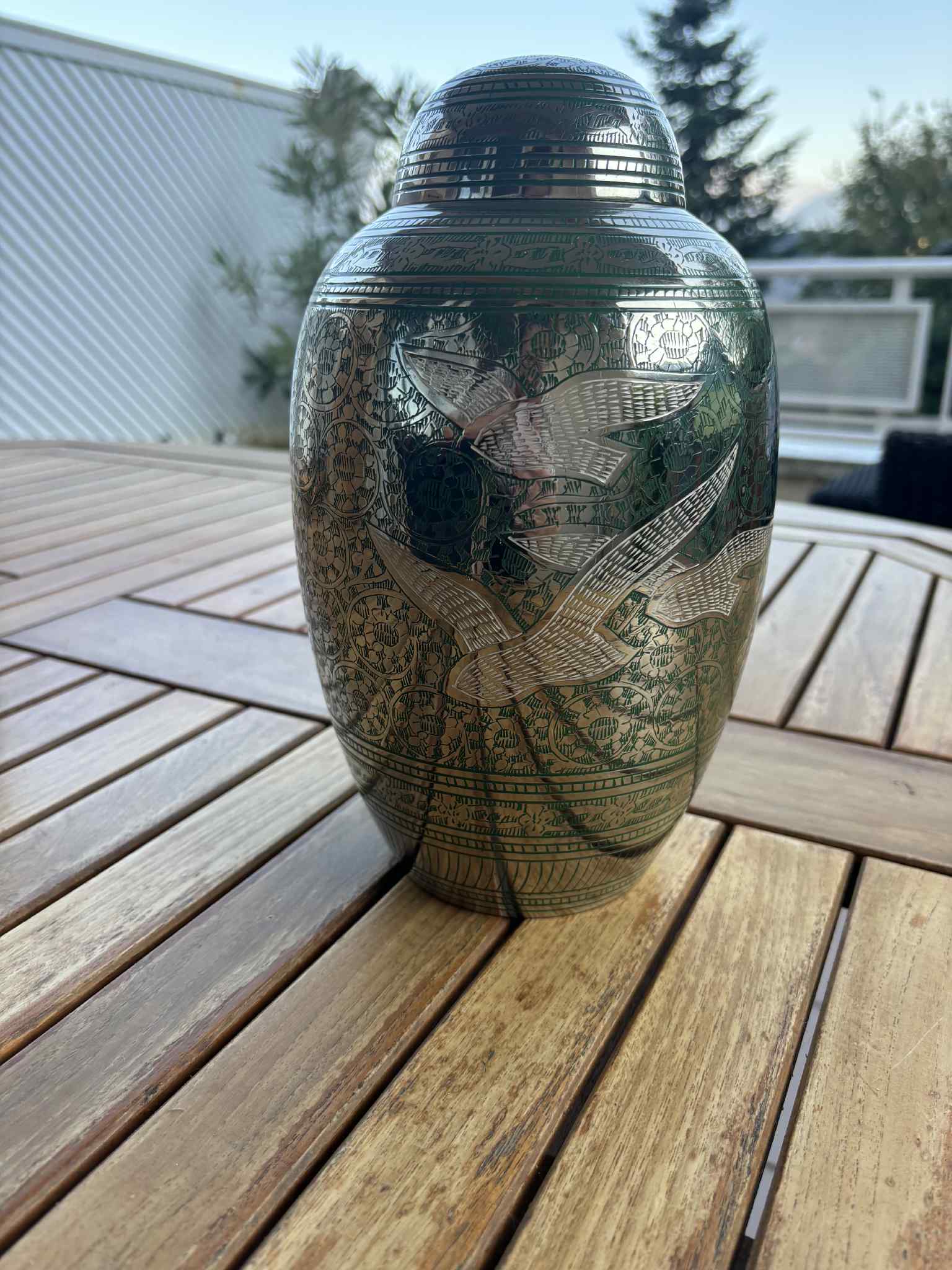 L'urna è in ottone, ha una mano finitura cromata lucida. Questa urna presenta un'apertura superiore fissato con un tappo a vite.