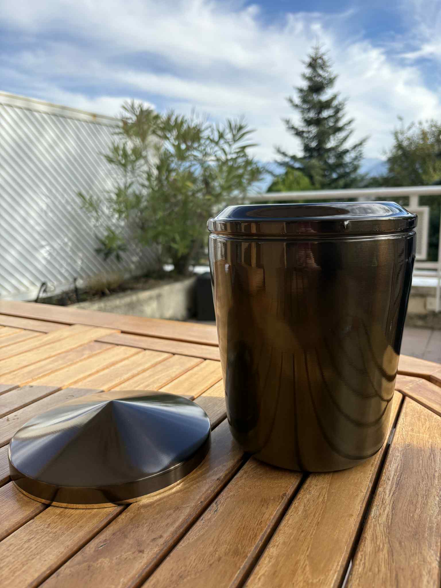 Il materiale metallico rafforza la robustezza di questo urna funeraria. A differenza di materiali come il vetro e la porcellana che si rompono facilmente, l'urna di metallo è infrangibile e richiede molto tempo per essere utilizzata. Questa gamma diUrna in metallo FERRER è marrone, ci sono ancora altri colori: blu, bordeaux, grigio e verde.