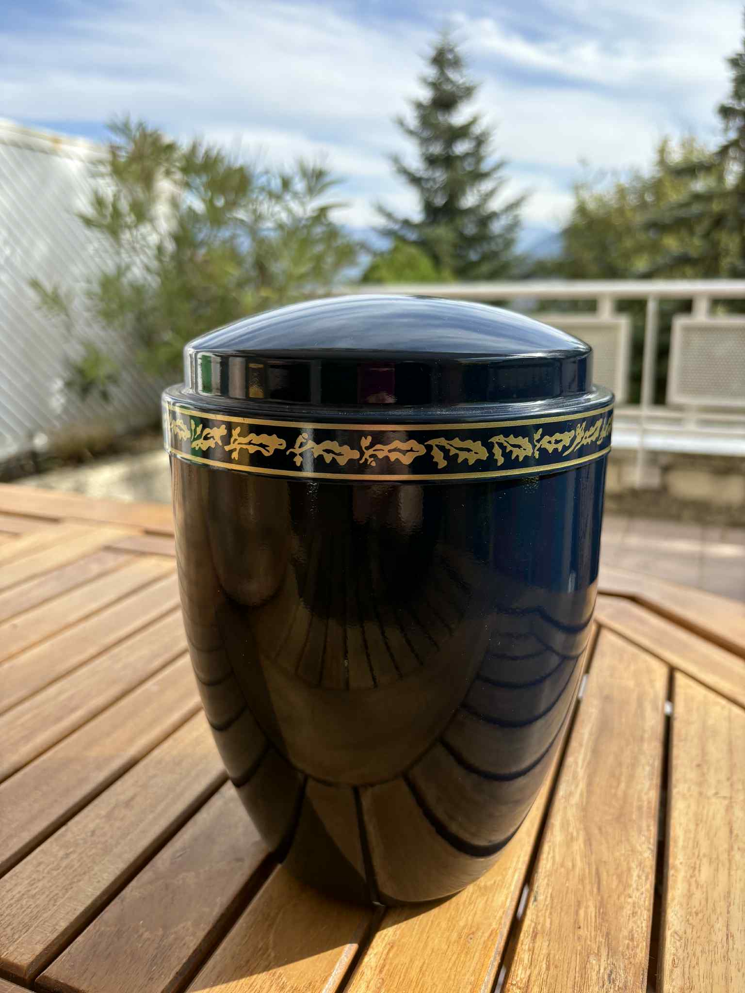 Gamma urna funeraria SAMIA ha diversi colori: verde, bordeaux, marrone e blu. Sono tutti in tinta unita, senza motivi aggiunti, incisioni o stampe come decorazioni. L'urna di metalloSAMIA è un prodotto funebre semplice e discreto.